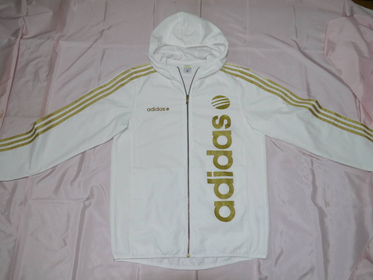 > ☆adidas/アディダスジャパン〃アディダス ネオラベル/NEO LABEL ポリエステルジップアップパーカー〃J SIEZ:M/ホワイト/ゴールド・古着★