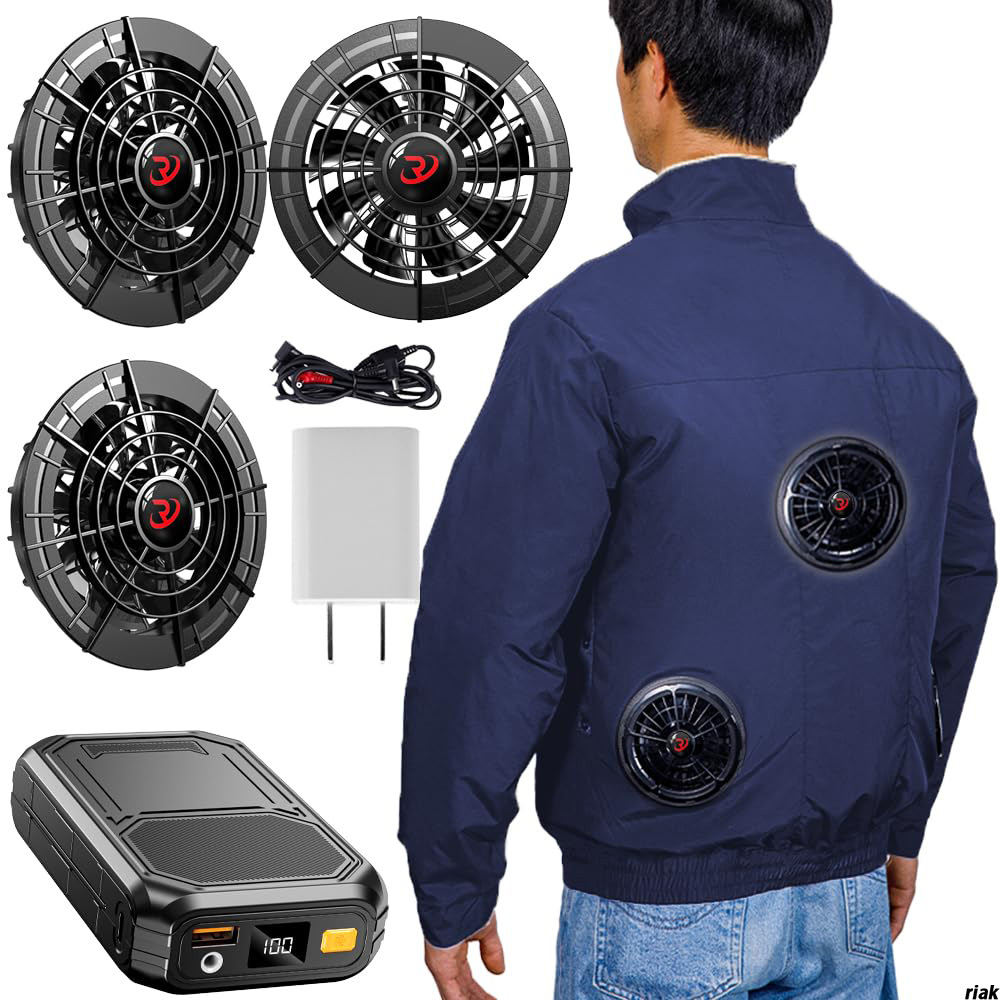 - 【3ファン構造で、全身を包み込む3D立体送風】 空調作業服 ファン付き作業着 バッテリー付き 夏用作業服 強力涼風 男女兼用 ネイビー L/XL