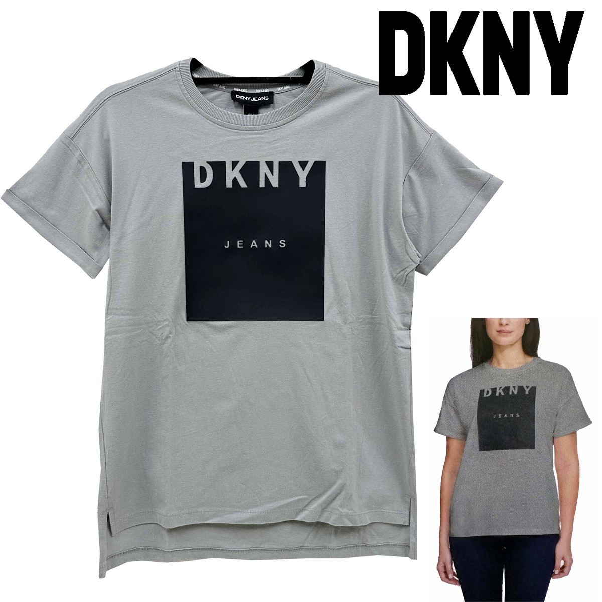 - 新品 M ★ DKNY JEANS レディース 半袖 Tシャツ グレー ブラック ラバーロゴ US-S 3D ロゴ 大きめ ディーケーエヌワイ ダナキャラン 綿