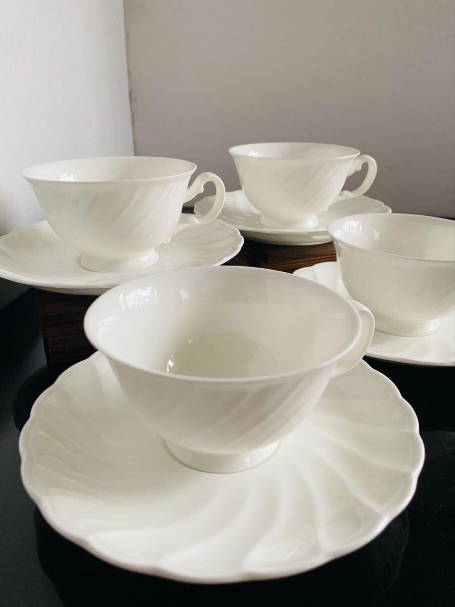 - 未使用品◆ノリタケ スタジオコレクション Noritake STUDIO COLLECTION カップ&ソーサー 4客セット 白花リム ティーカップ