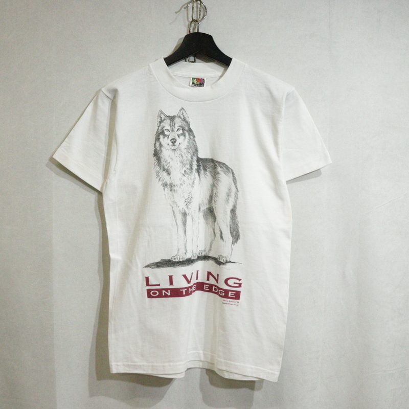 > f849 90sビンテージ フルーツオブザルーム アニマル プリントTシャツ USA製■1990年代製 表記ボーイズ16サイズ 白 ホワイト アメカジ 80s