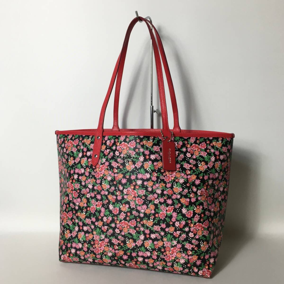 > 2507-267|美品|コーチ トートバッグ レザー レッド リバーシブル 花柄