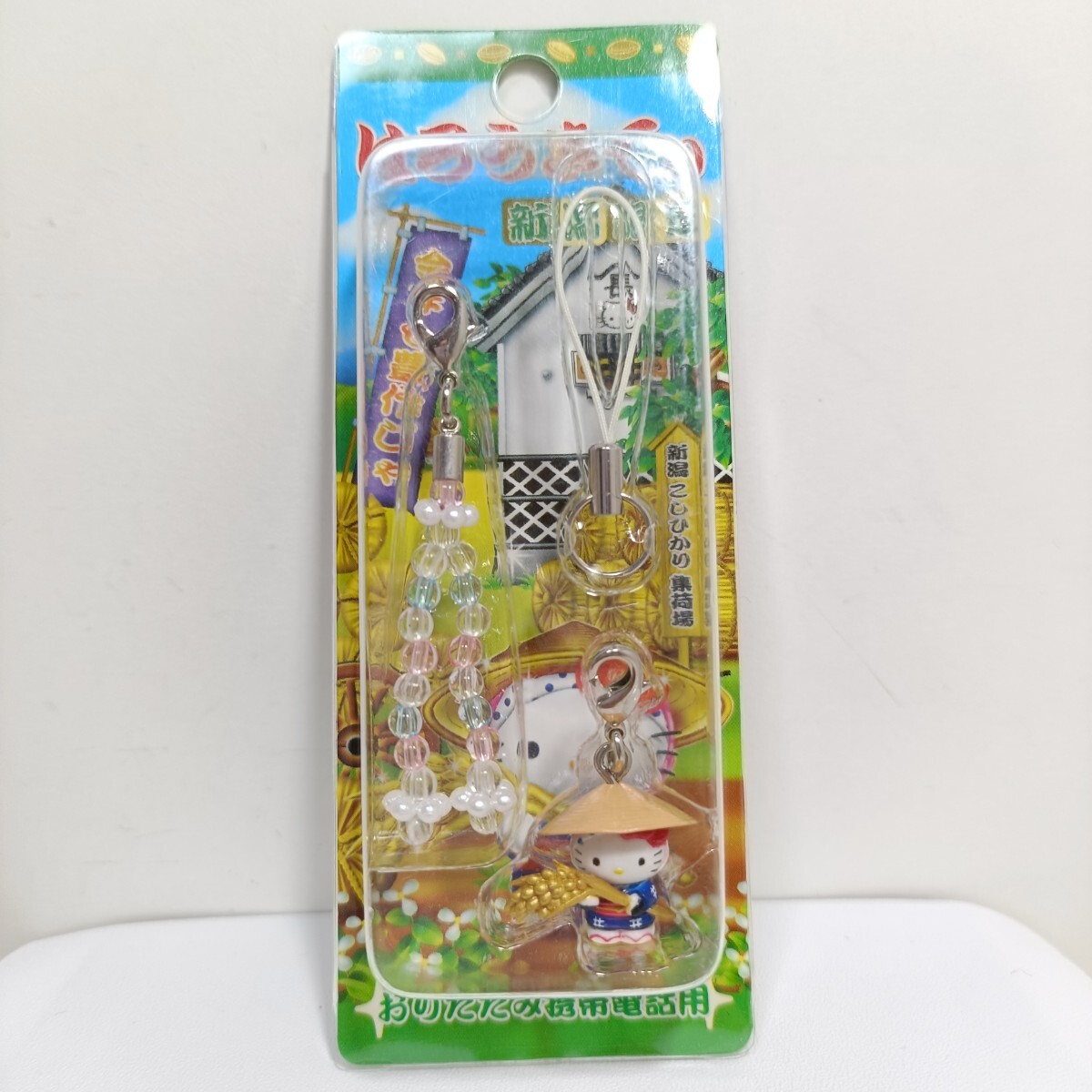 > 2004年 ハローキティ はろうきてぃ 新潟限定 新潟こしひかり集荷場 二つ折り携帯用ストラップ マスコット 根付 未開封 日本限定 農婦キティ