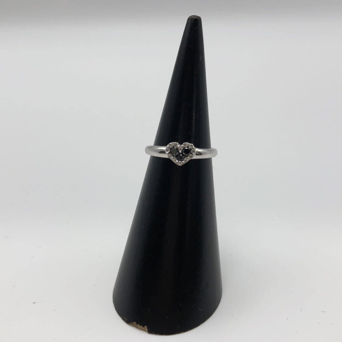 > PonteVecchioリング 36【中古品】ポンテヴェキオ ダイヤハートリング 10号 K18WG ブラックダイヤ0.14ct ダイヤ0.06ct