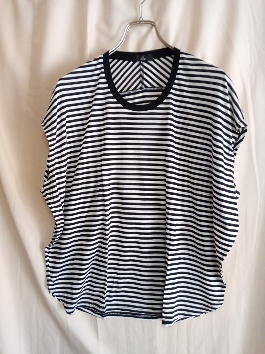 - 7760 ■■ フランドル イネド ボーダーフレンチスリーブトップス サイズ9