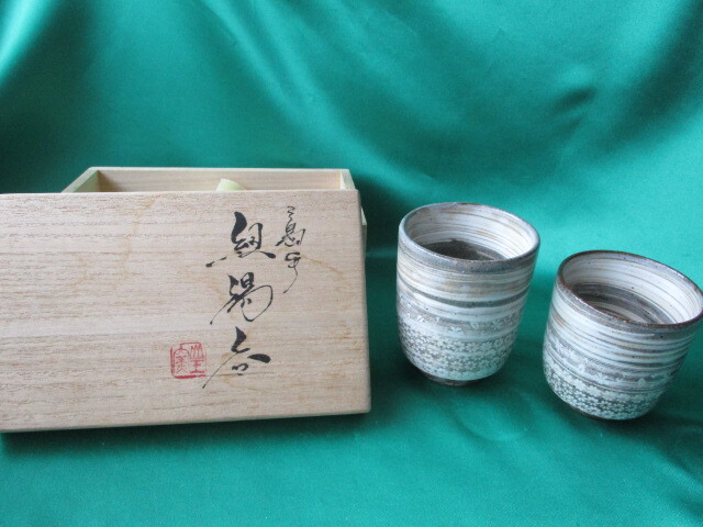 - 山王窯 弘 三島手 夫婦 ペア 湯呑 2客セット 未使用品