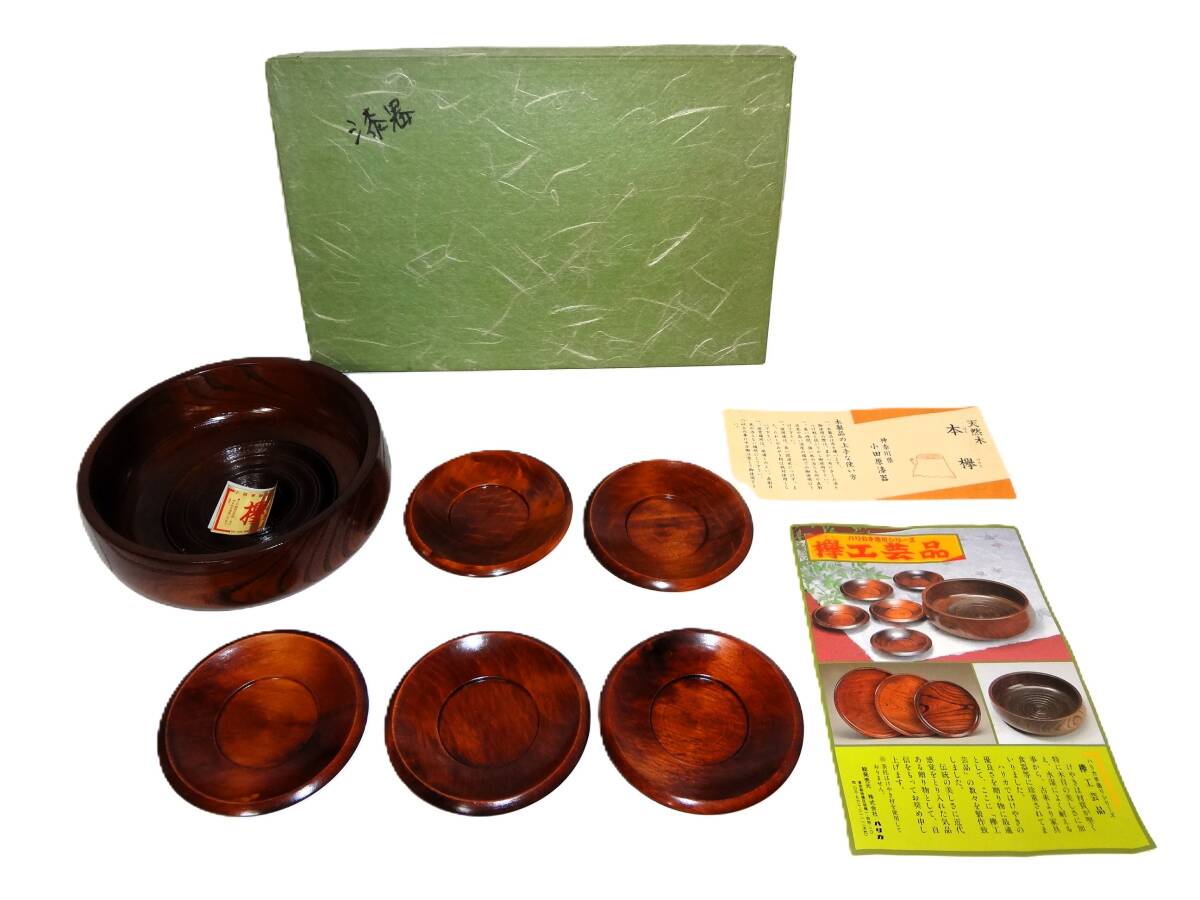 - ⑥小田原漆器 天然木本欅製 菓子器&茶托 5枚セット