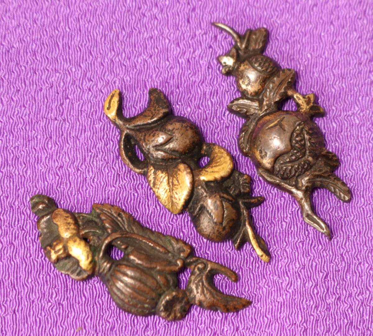 - 穣乃草葉図~刀剣片目貫 3個 まとめ 刀装具
