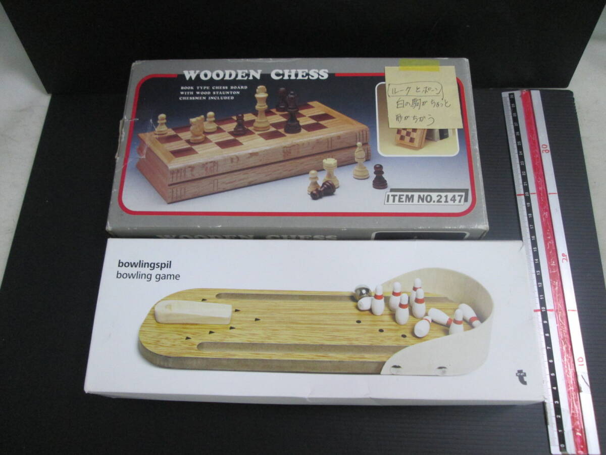 - ボウリングセット ウッドボーリング+チェス(ルークとポンの駒2種の形状がすこし違いますよくみて画像5と6)2台で