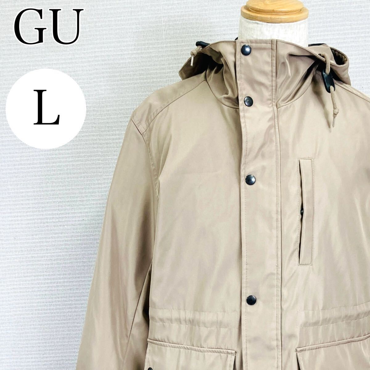 - 【A4156】 GU ジーユー Lサイズ アウター マウンテンパーカー ベージュ フード メンズ ジャンパー ウエスト絞り 袖ボタン スタンドネック