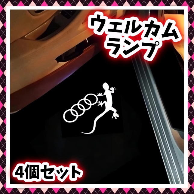 > Audi アウディ カーテシ ウェルカム ドアランプ 4個 ゲッコー フォーリングス とかげ やもり LED ロゴ投影プロジェクター 足元ライト 照射