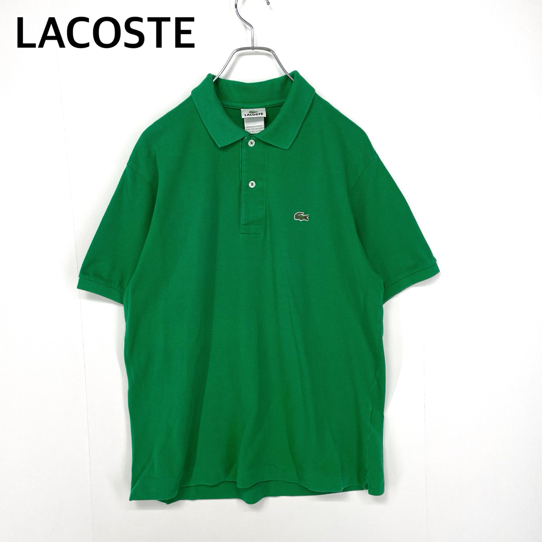> 大人気 ラコステ 半袖ポロシャツ グリーン 緑 鹿の子 メンズ 5サイズ L〜XL相当 ワニロゴ 定番デザイン 古着 LACOSTE