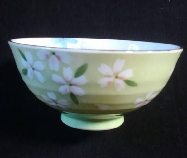 - 飯椀 京桜 お茶碗 グリーン 美濃焼 和食器 花柄 飯碗 ご飯茶碗 業務用 家庭用 茶碗 春 爽やか さくら 中サイズ かわいい さわやか 緑色