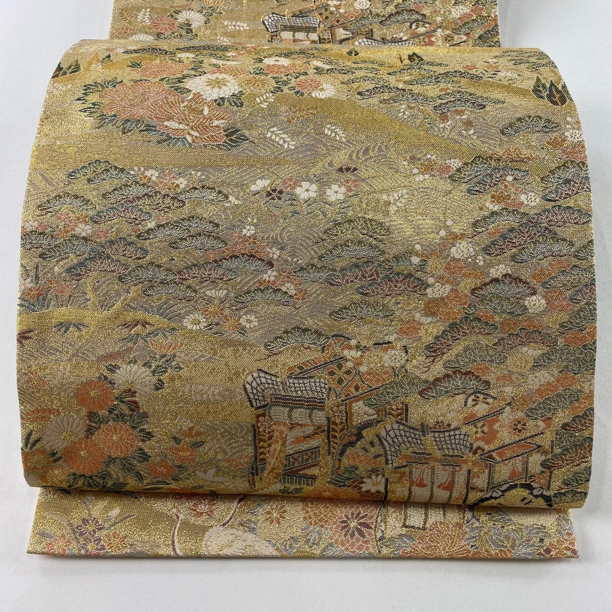 > 袋帯 美品 秀品 御所車 松 箔 金色 六通 正絹 【中古】