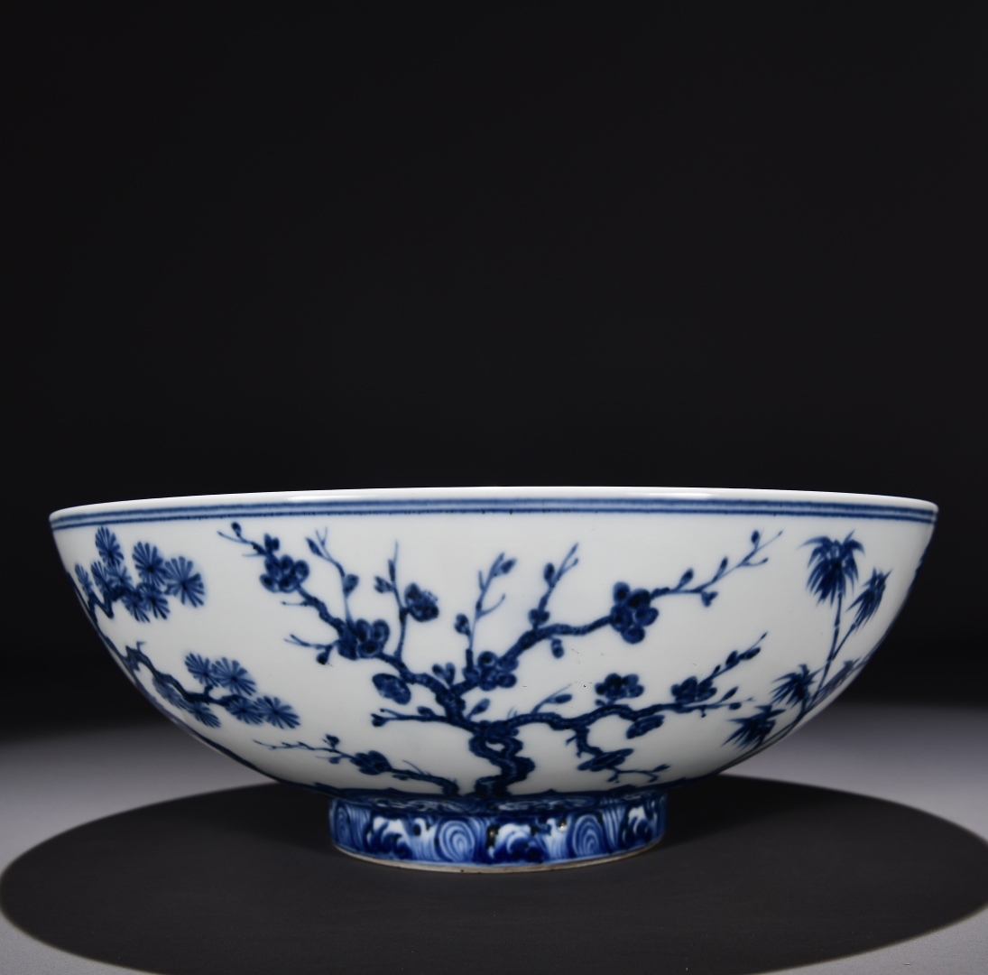 - 多宝閣 ■ 207191 中国磁器 中国骨董【明の宣徳時代の青白松竹梅文様の大きな鉢】工芸品 施釉陶 陶芸 置物 收藏品 孤品