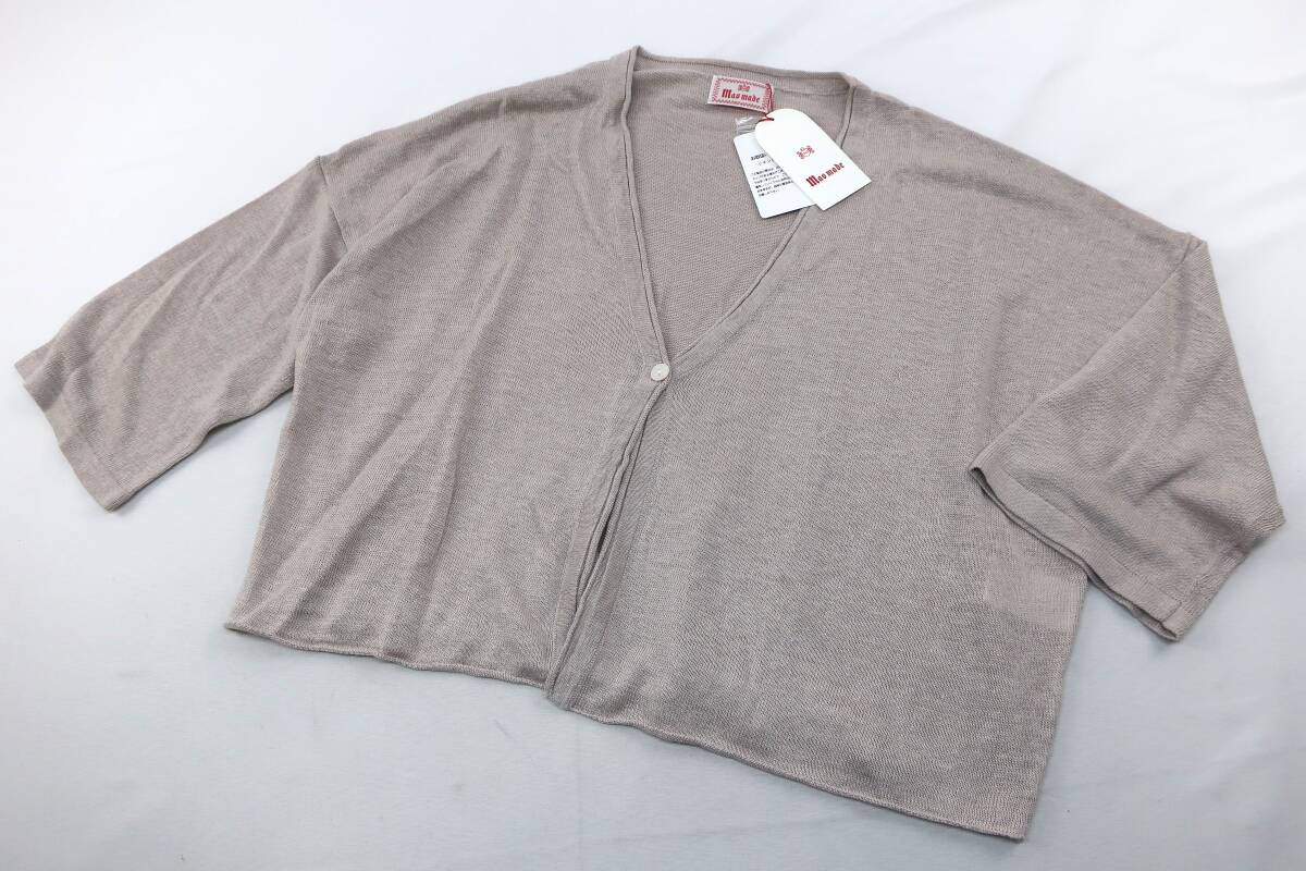 > 【送900円】453 未着用品 mao made マオメイド リネンニットカーディガン ベージュ クロップド丈 七分袖 羽織り 麻100% Free