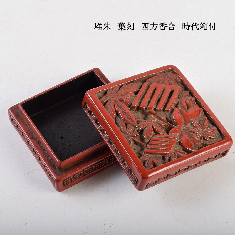 - 中国美術 堆朱 葉刻 四方香合 時代箱付 VPBL