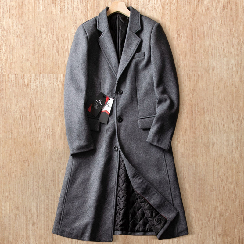> Y680-L程度 グレー 新品DCKMANY ウール混 テーラードコート チェスターコート ロングコート 中綿 秋冬 防寒 ビジネス アウター メンズ