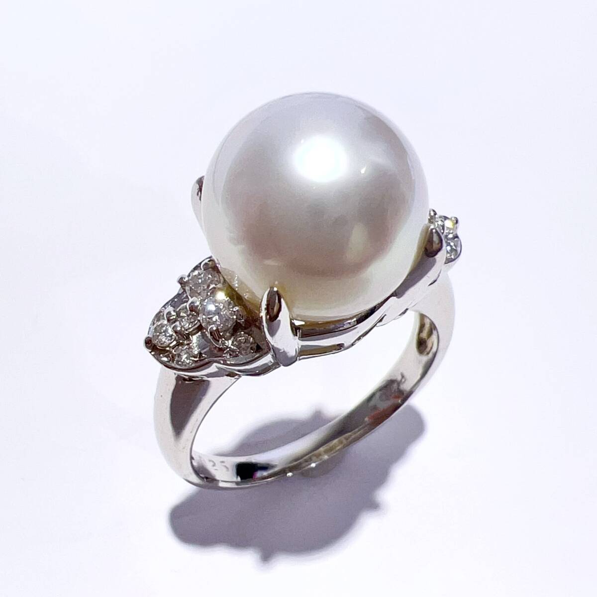 - Pt900 天然 白蝶 南洋 パール ダイヤ リング 本真珠 11mm D0.25ct 10g 17号 レディース アクセサリー 指輪 美品
