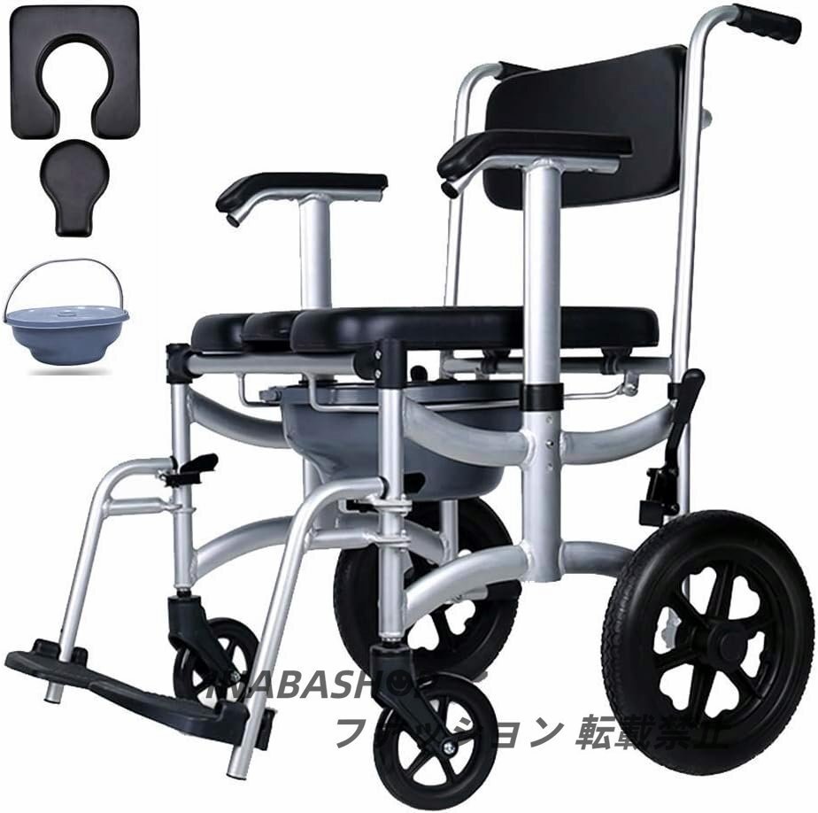 - シャワーチェア 折りたたみ アルミ製 軽量 入浴用車椅子 U型座面 介護用防水 ノ一パンクタイヤ 便器付お風呂椅子 転倒防止 高齢者敬老の日