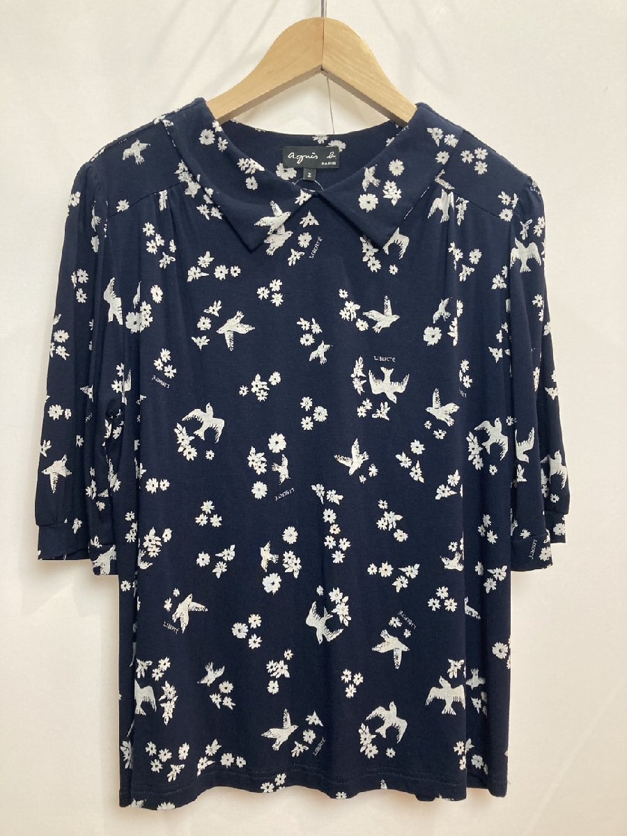 - アニエスベー LIBERTY 生地 リバティプリント 半袖ポロシャツ【L's(2)/ネイビー/Sランク】d5AD
