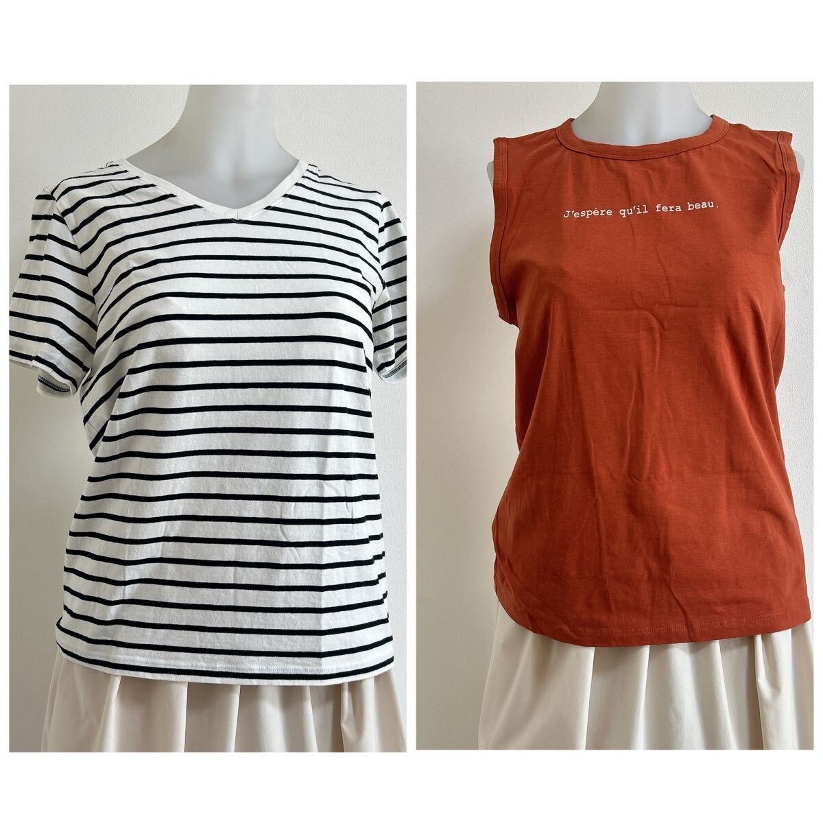 - E hyphen 2枚セット Fサイズ タンクトップ&ボーダー半袖 美品 レディース 春夏 Tシャツ カットソー J