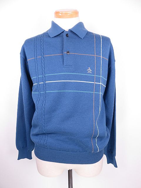 - 【送料無料】マンシングウェア グランドスラム 長袖ニットセーター 毛100% ブルー 青 ロゴ刺繍入り L