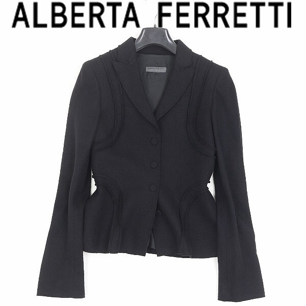 > 【FA645】美品◆ALBERTA FERRETTI アルベルタ フェレッティ ウール ピンタックデザイン ジャケット 黒 ブラック 40