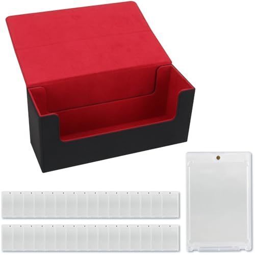 - ttas/h トレカ保管セット デッキケース マグネットローダー33個 35PT 傷/折れ防止 PUレザー (黒×赤)