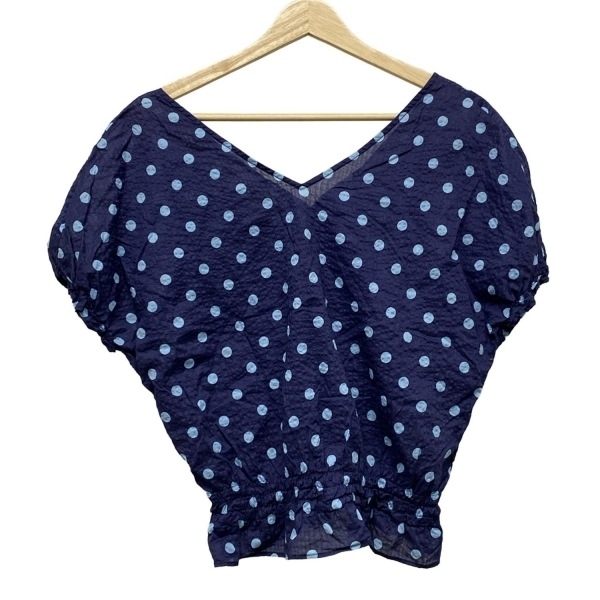 - イエナ IENA 半袖カットソー - ネイビー×ライトブルー レディース Vネック/ドット柄 トップス