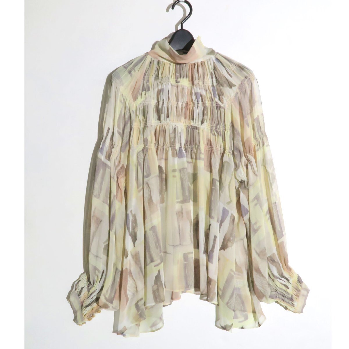 - CURRENTAGE シアー シャーリング ブラウス A2503FB 243 カレンテージ プリント 柄 ギャザー ボリューム スリーブ
