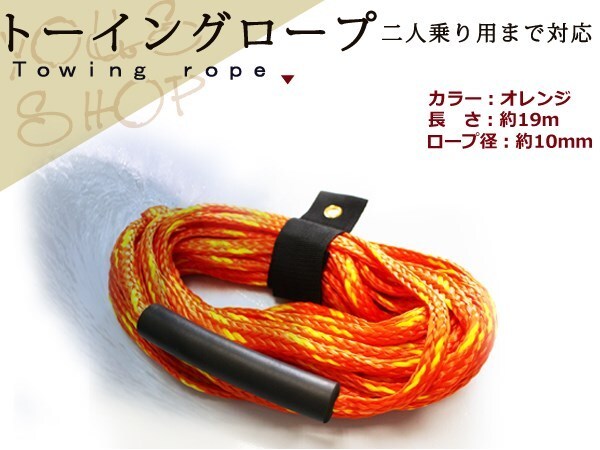- 新品 トーイングロープ 19m 1~2人乗り用 オレンジ フロート付き