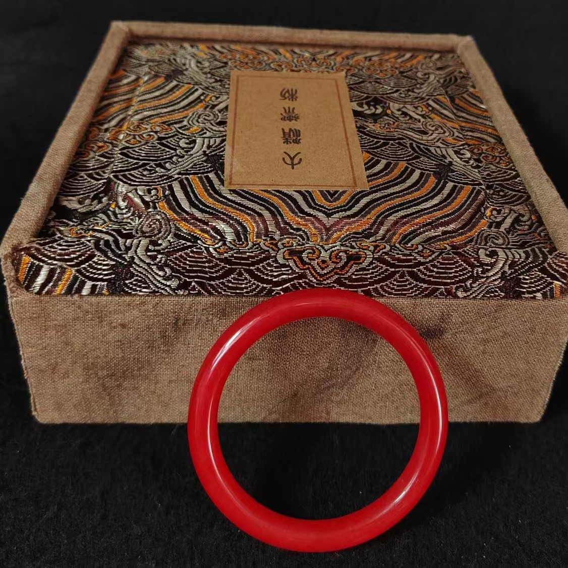 - 清代・老玉 秘藏 乾隆年制錦箱 ひすい色すみれの腕輪 唐物 古玉彫 天然石 稀少珍品 古美術 古賞物 古置物 旧蔵 8.16