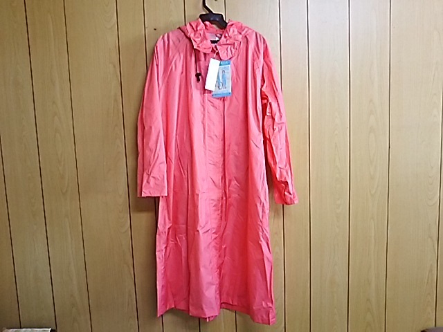 > 京都洋傘レインコート・・ロングコート・オールインワンサイズM-Lポリエステル100% ピンク サイクリングコート 新品未使用品