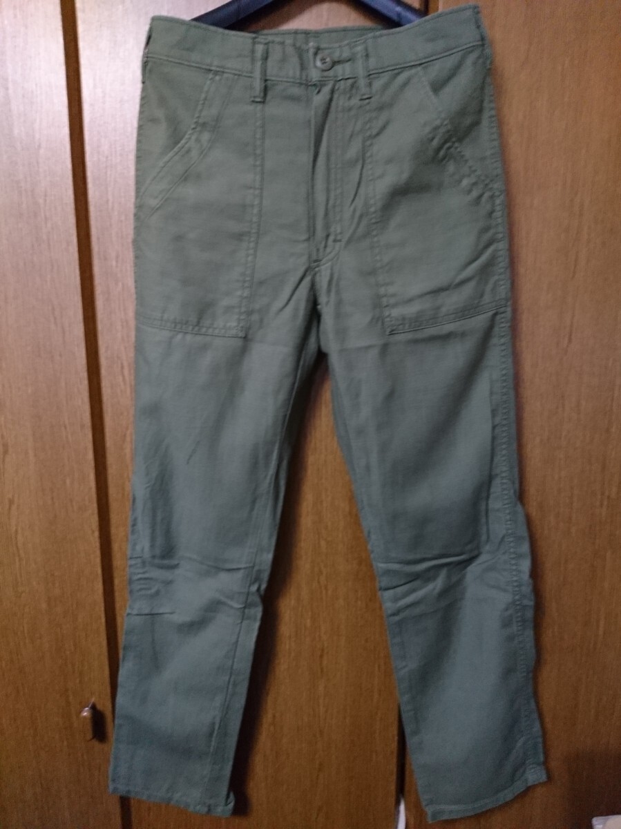 - 日本製 gung ho ブラックレーベル ベイカーパンツ 30 オリーブ ガンホー us.army バックサテン