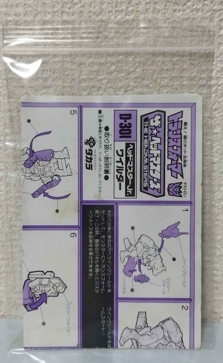 > トランスフォーマー D-301 ヘッドマスターjr. ワイルダー 取り扱い説明書(取説 旧タカラ 戦え!超ロボット生命体トランスフォーマー