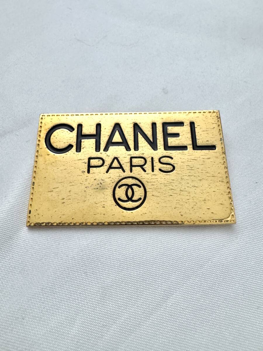 - 7H1710【本物保証】シャネル ブローチ ココマーク ロゴ プレート ゴールド ブラック vintage CHANEL