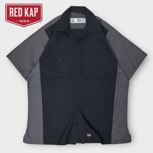> ★比翼ボタン★RED KAP半袖オープンワークシャツ sizeM ピスネーム ペンホルダー スリット レッドキャップ 古着 洗濯 プレス済み 2438