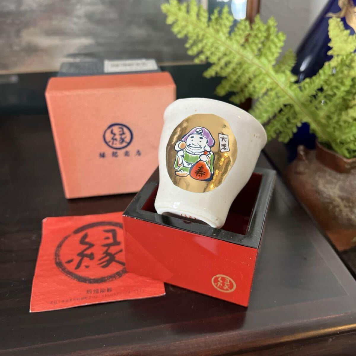 - wasabi k108 縁起商店 七福神マス付きぐい呑み 大黒天 大黒様 箱入り 前畑陶器 にこやかに微笑む大黒様のイラストが可愛らしい縁起物
