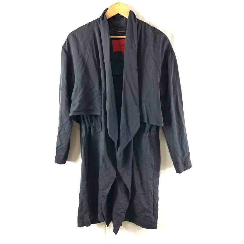- マンゴ MANGO コート アウター 羽織 レイヤード風 ミディアム丈 薄手 春秋 とろみ素材 グレー系 ダークグレー Mサイズ 2025072600161