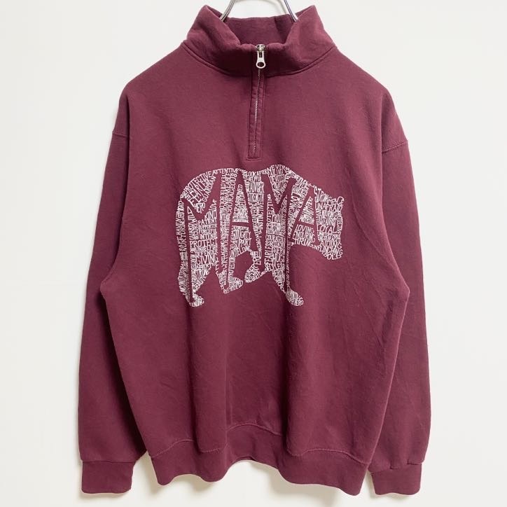 - 古着 used JERZEES ジャージーズ 長袖ハーフジッププリントスウェット トレーナー レトロデザイン えんじ色 Mサイズ