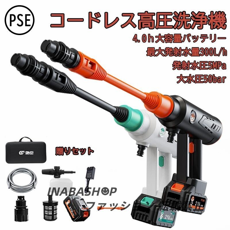 - コードレス高圧洗浄機 50bar 50倍増圧 大容量バッテリー 家庭用 セット 安静 洗車 車掃除 車洗い充電式 外壁 掃除 収納ボックス ケース軽量