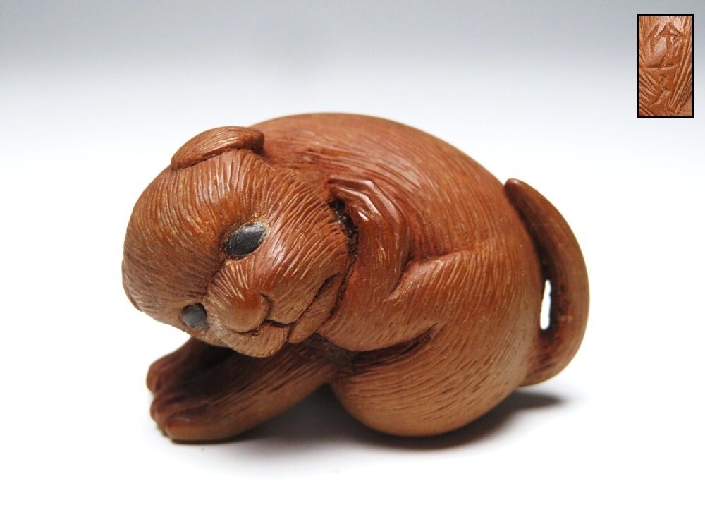 - 【11341】明治期 堤物 木製 犬 置物(初品・買取品)
