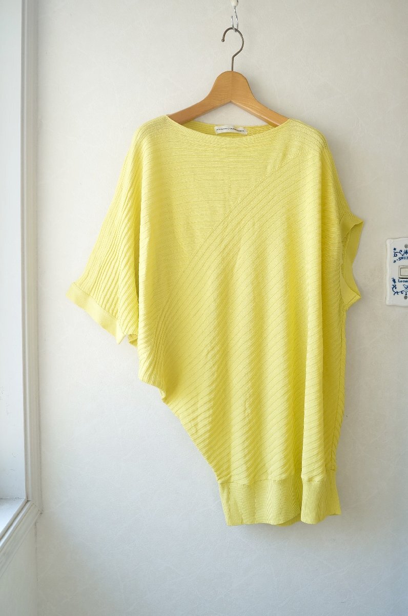 > ★送料無料!! HIROKO KOSHINO / ヒロココシノ *アシンメトリー 変形デザイントップス サマーニット/イエロー 38*古着のgplus広島 2508t2