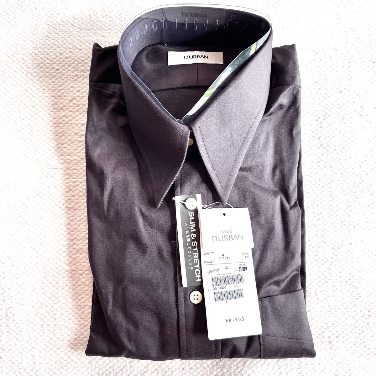 > 未使用 D'URBAN ダーバン メンズ ワイシャツ Yシャツ 長袖シャツ ブラウン系 無地 40-L 綿 ポリウレタン ビジネス カジュアル フォーマル