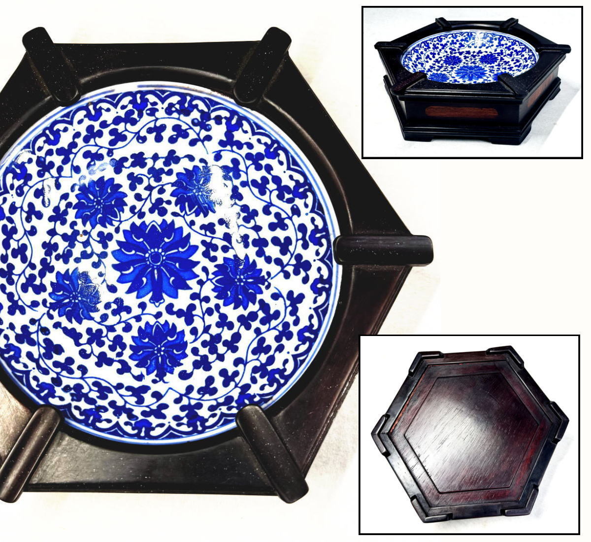 > 【送料無料】時代物 古染付纏枝花卉紋皿 唐木灰皿 呉須 青花 ウブ品 入手困難 骨董 中国古玩 (旧家蔵出し) WWTT332
