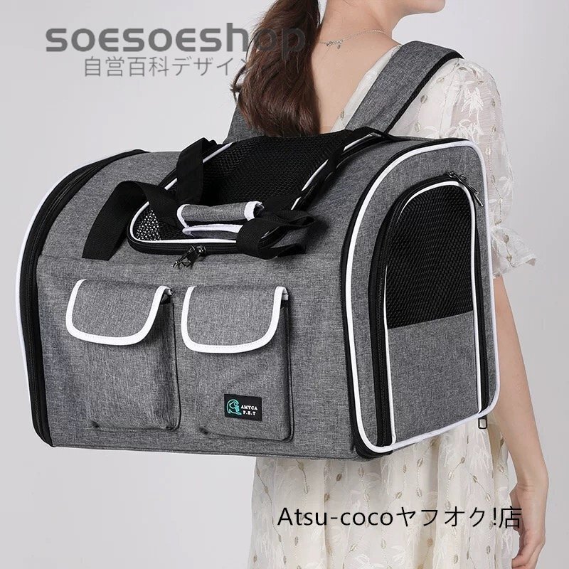 - 大人気犬 ペットリュック ペットキャリー 折りたたみ バッグ 3WAY リュック ショルダー 猫 犬 小型 中型 大きめ 小物入れ グレーキャリア