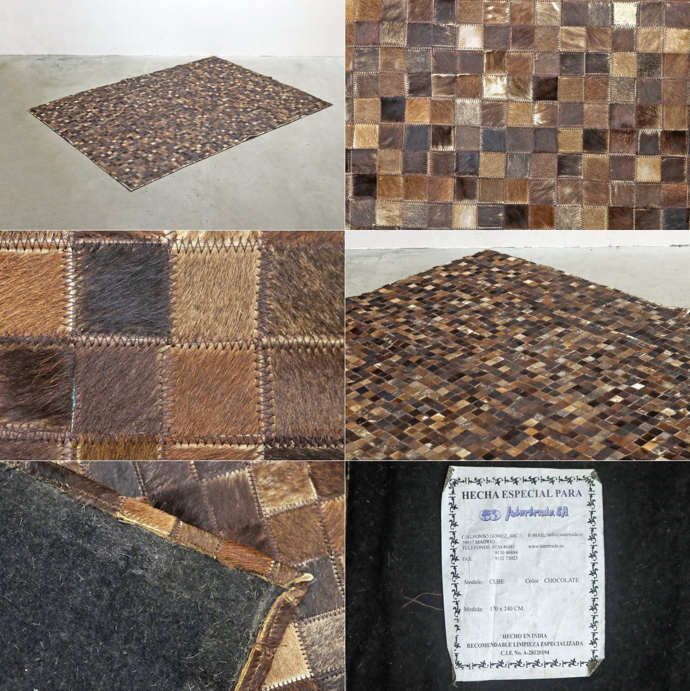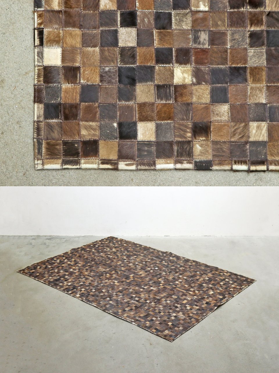 > ◆牛革 パッチワーク ラグ ハラコ 敷物 カーペット モダン/ヴィンテージアンティーク店舗什器/PHT12093◆