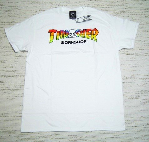 > セール30% 送料無料 スラッシャー SPECTRUM T-SHIRT スペクトラム 半袖 Tシャツ レインボー アウトライン マグロゴ 白 L 311588 US企画