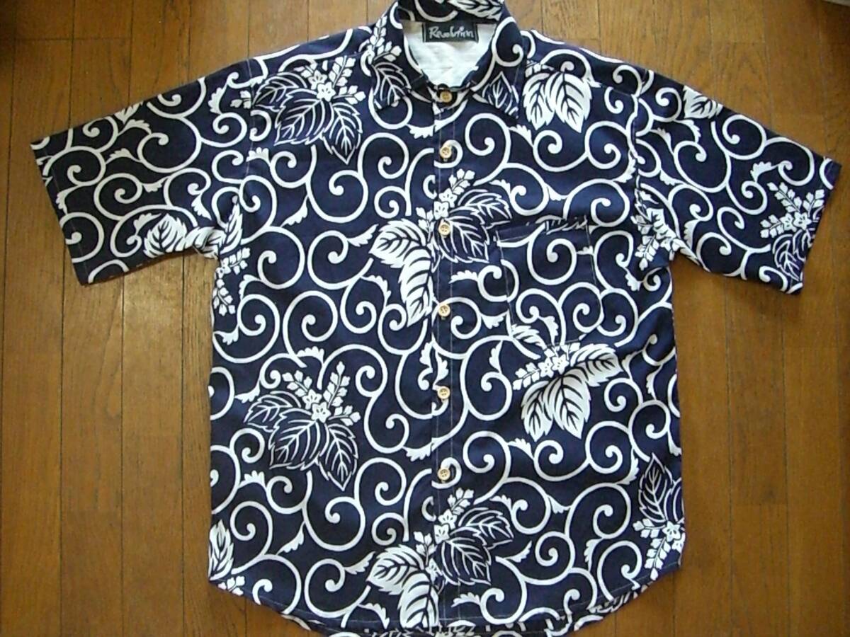 - ☆手作り☆ 唐草半袖シャツ 紺 XL 新品 送無料あり